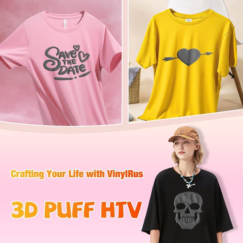 - 【Great Puff Effect】For best puff effects, we strongly recommend you to set the temperature at 310-320°F(155-160℃) and press for 12-15 seconds with pressure of 6.6LB(3kg), Otherwise the puff effect of this puff htv vinyl roll will not be good enough.