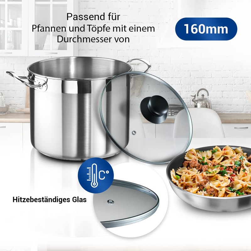 - Easy to use: the universal lid for pots and pans has a transparent surface. This pot glass lid / pan lid 16 cm is user-friendly