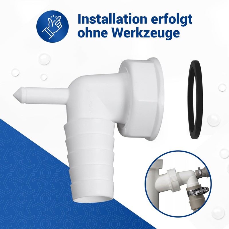 - Space-saving: the angle hose nozzle from VIOKS allows a space-saving dryer/washing machine connection
