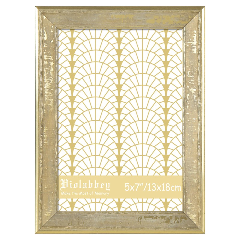 VIOLABBEY 5x7 Picture Frame Gold, Vintage 5 x 7 Photo Frames without Mat for Tabletop or Wall Hanging