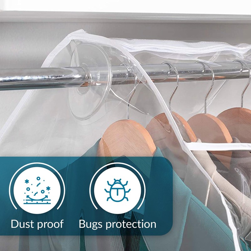 • All Clear Transparent Design: The clear, transparent vinyl allows you to easily see the contents inside without opening the bag, making it convenient to quickly locate your garments. Ideal for organizing and storing suits, dresses, and other apparel.