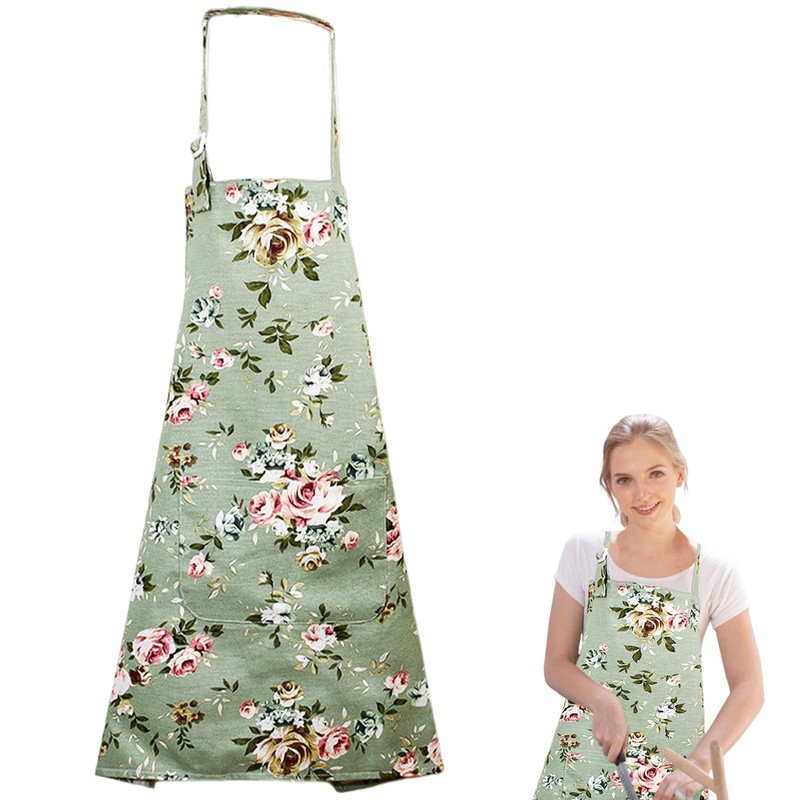 Violotoris Apron for Women, Tabards for Women with Pockets, Flower Print, Adjustable Hanging Strap, for Home Baking, Kitchen, Diy Crafts