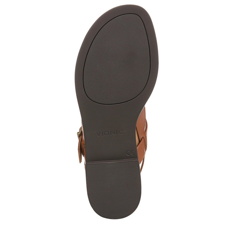 Vionic Women's Cora Flip-Flop, Tan Brown Leather, 10 Wide