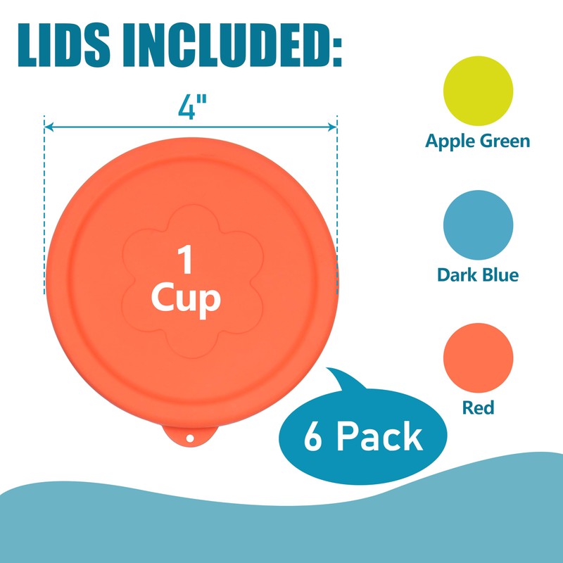 Viotiin 1 Cup Silicone Replacement Lids Storage Cover for Pyrex 7202-PC and Anchor Hocking Glass Bowls (Container not Included) 6 Pack Microwave, Dishwasher and Freezer Safe