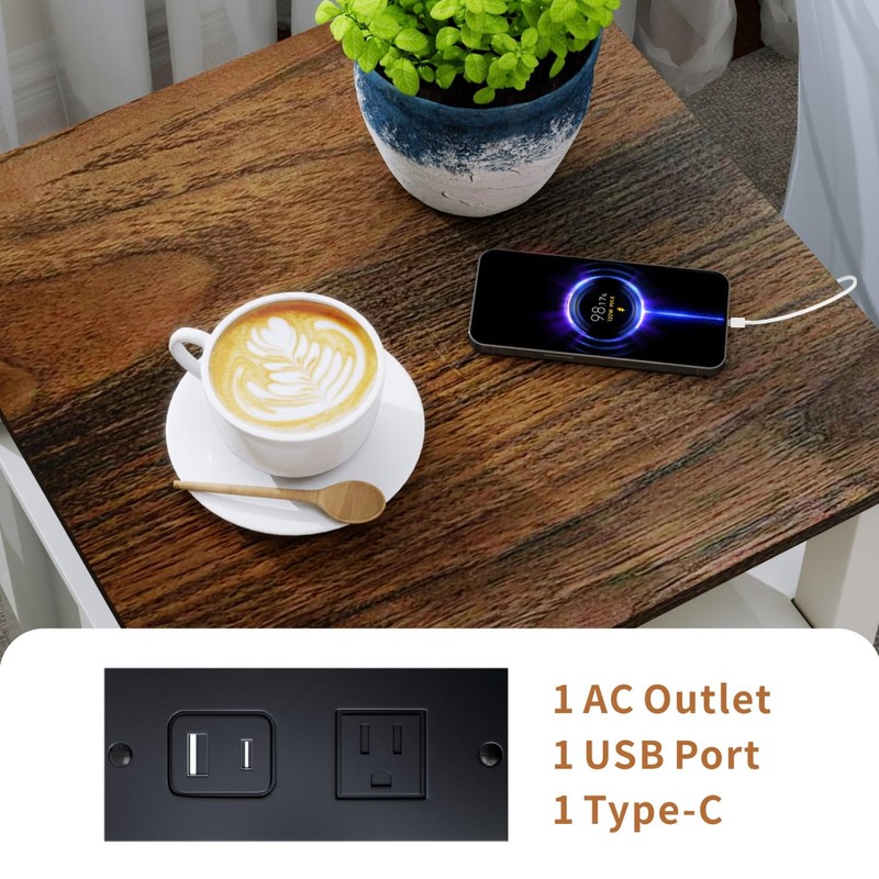 - 【Smart Device Charging Station】Charge phones, tablets, and medical devices simultaneously with 2 outlets + 2 USB ports. Back-panel cable holes (2.3" diameter) keep cords organized on the 18"x18" spacious top - perfect for lamps and decor while powering your essentials.
