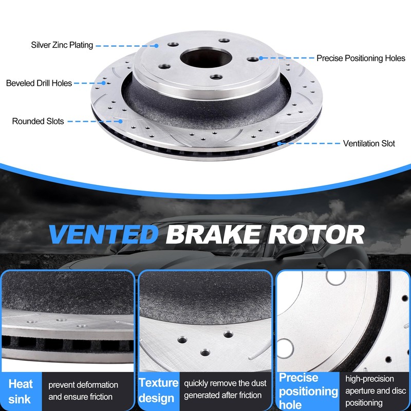 - Features & Benefits:Solid in construction, each rotor is vented to dissipate heat evenly and efficiently,made with G3000-qualified material, guaranteeing form, fit and function for dependable performance