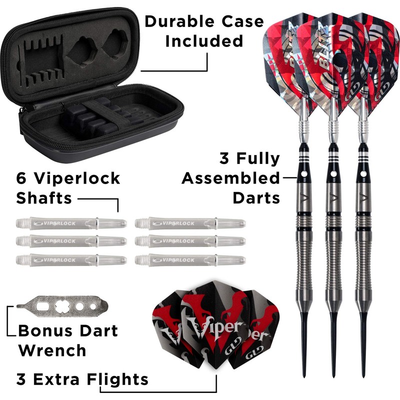 Viper by GLD Products unisex adult Viper Blitz 95 Tungsten Steel Tip Dart Set with Case 22 Grams, Black, 22-Gram US
