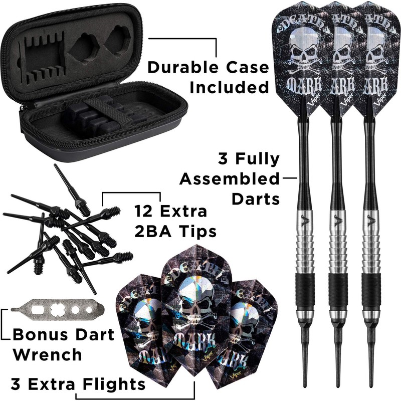 Viper Desperado 80% Tungsten Soft Tip Darts with Storage/Travel Case: Death Mark, Fine Knurling, 18 Grams