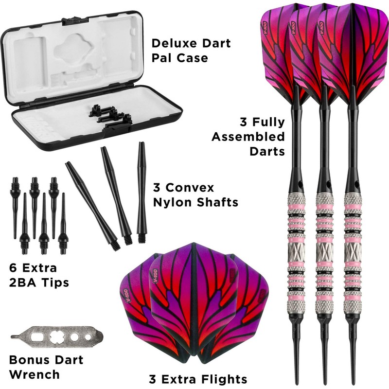 - Includes an additional set of convex nylon shafts, flights, flight protectors, 2BA dart points and a dart mechanic wrench; Each soft tip dart weighs 16 grams