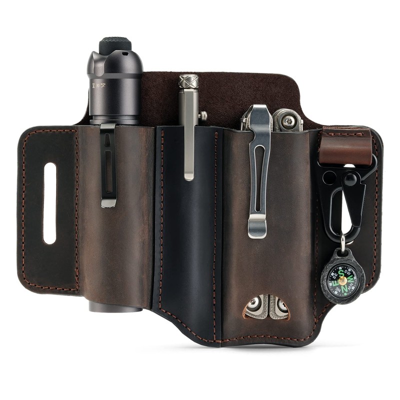 VIPERADE PJ29 ベルト用マルチツールシース、レザーEDCポケットオーガナイザー、男性用EDCレザーシース、懐中電灯、マルチツールシース、EDCベルトオーガナイザー。
