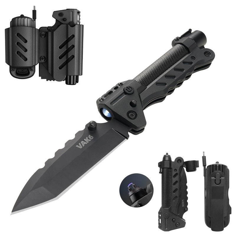 - All-In-One Survival Gear: VIPERADE VAK6 survival multitool made up of manual folding knife, LED flashlight, pulse ignition and hand crank generator for emergency charging; It is designed for outdoor adventurers, campers and EDC enthusiasts