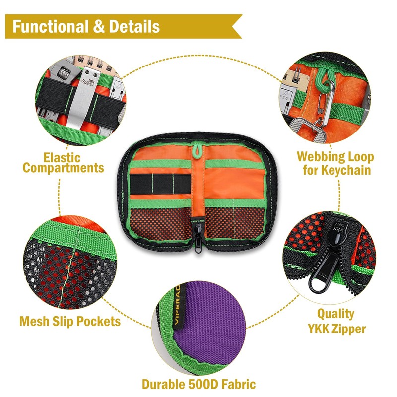 VIPERADE VE10 Small EDC Pocket Pouch, Compact Nylon EDC Organizer Pouch for Men, Small Tool Organiser with 7 Pockets, Mini Tool Organizer for Multitools