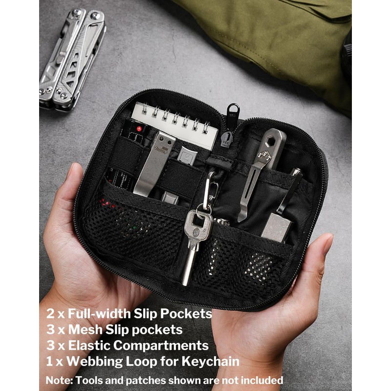 VIPERADE VE10 EDC Pouch Small Pocket Tool Pouch with 10 Compartments, Men's Pocket Organizer for Multitools, EDC Organizer with Patches Area for DIY
