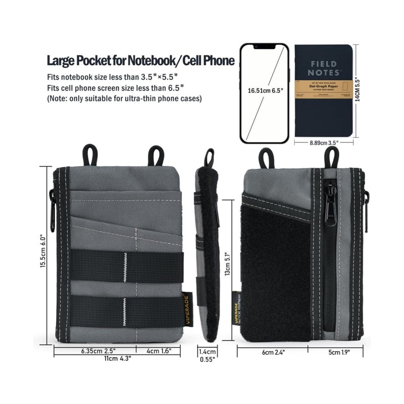 VIPERADE VE18 Small EDC Bag, Small Tool Bag with 6 Pockets, EDC Tool Organiser Bag for Men, Small EDC Multitool Pockets Organiser Pocket Pouch with Velcro Area - Grey