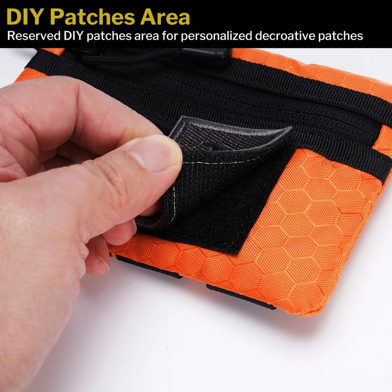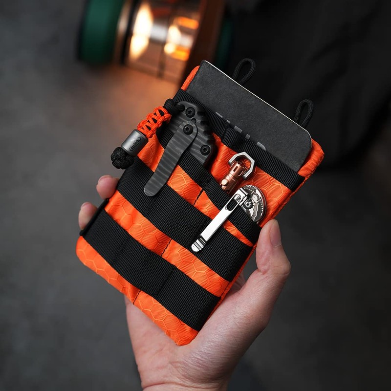 - Multifunctional small tool organiser pouch: this small tool bag has 1 zip pocket, 1 large opening pocket and 2 small opening tool slots and a Molle system for effectively organising your small tools such as mini torch, pocket knife, multitool, pen, mini notebook and other mini EDC gears. The tool pocket organiser bag prevents tools from scratching in your bag.