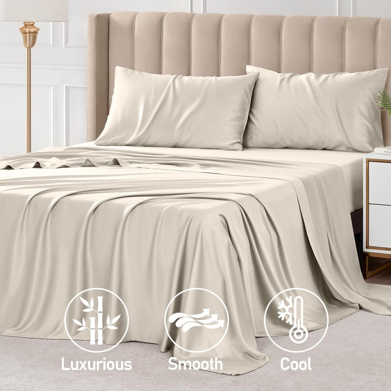 - Silky & Soft: Our luxury sheets set are made from 100% Rayon Derived from Bamboo, it has a delicate and soft texture, feels silky and smooth, and brings a refreshing skin experience. Its natural material is not only gentle and skin-friendly, but also effectively reduces friction, and is particularly friendly to hair, reducing the trouble of hair tangling after getting up in the morning