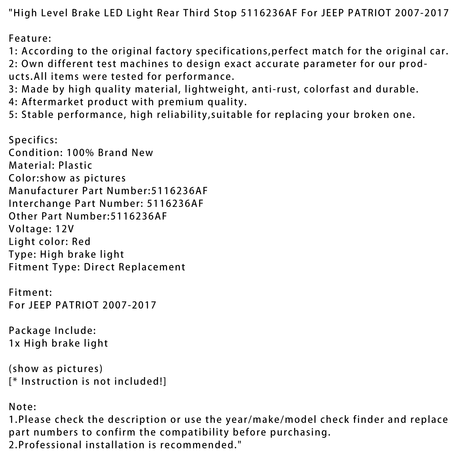 VIPIH High Level Brake LED Light Rear Third Stop 5116236AF For JEEP PATRIOT 2007-17 US