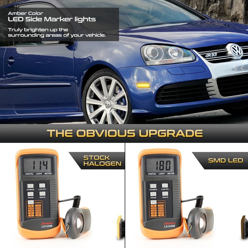 VIPMOTOZ Front Full LED Amber Side Marker Lamps Compatible With 2005-2010 VW GTi Jetta Rabbit R32 MK5 Smoked Tinted Lens Left Driver Right Passenger Side Pair Set
