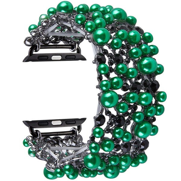 VIQIV - Correa para reloj Apple de 38 mm, 42 mm, 40 mm, 44 mm, iWatch Series 6/5/4/3/2/1, con diamantes de imitación y perlas