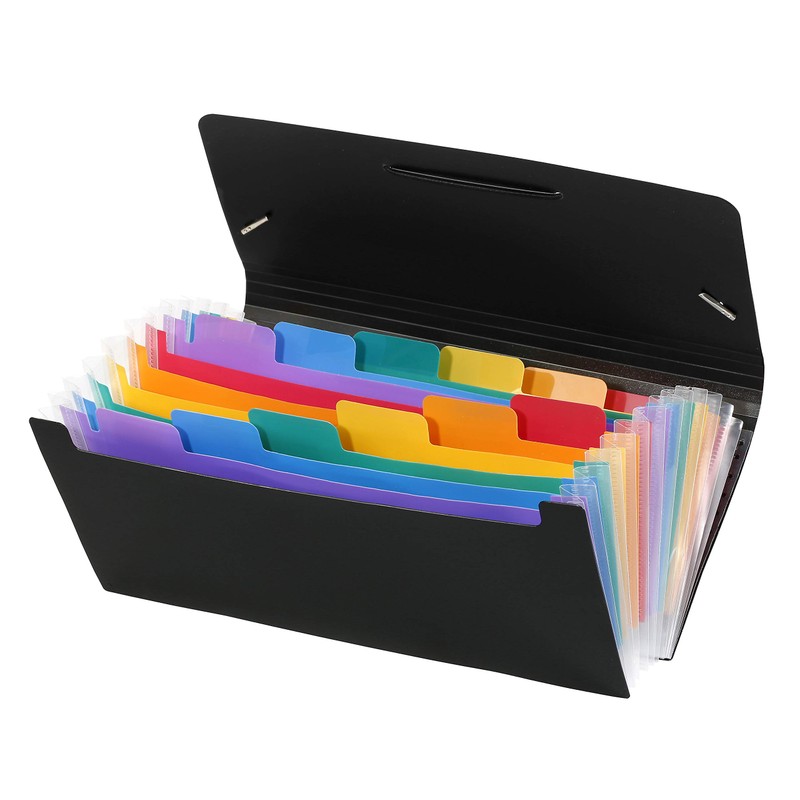 - DESIGN: An accordion sorter in trendy polypropylene 7/10 colors that will allow you to organize your storage system with style in the office or at home