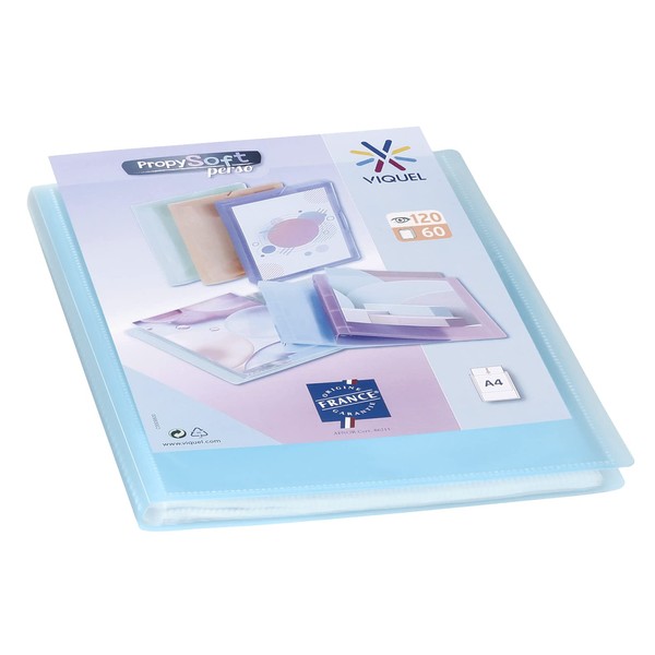 Viquel - Propysoft Customisable Document Cover - A4 Format Binding - 120 Pockets (60 Pockets) - Transparent and Smooth Pockets - Translucent Blue