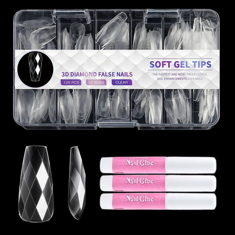 Virellay 120 Stück Transparente Künstliche Nägel - Falsche Nägel (Clear Coffin, 120pcs)
