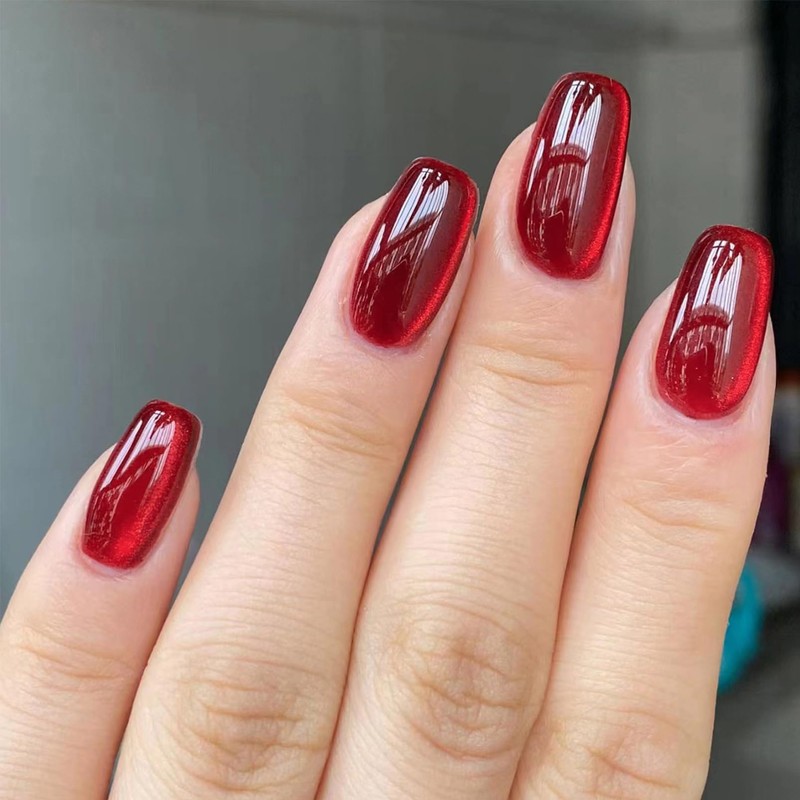 Virellay 24 x Press On Nails Press On Nails - Cat Eye False Nails for Women (Red, Short)