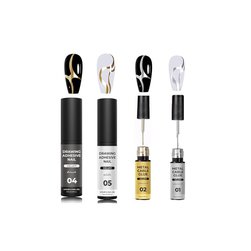Virellay Gel Liner UV Nagellack Set - 4 Farben Schwarz Weiß Gold Silber Designfarbe für Gel-Nägel - 5ML