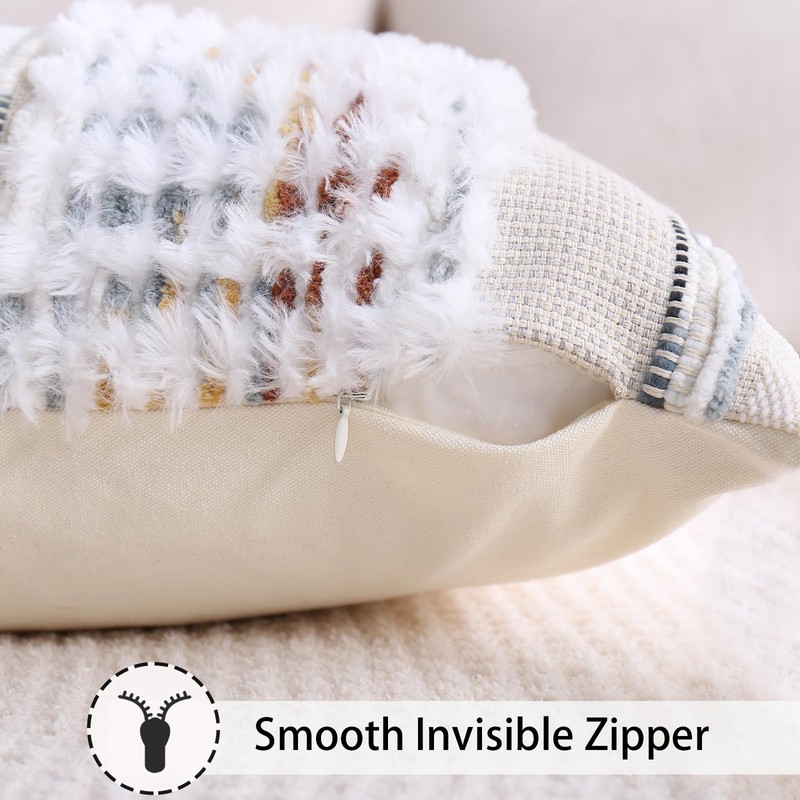 - 【Soft Material】 The boho throw pillow cover 18x18 is made up of chenille and tufted on the front, and premium cotton fabric on the back. The chenille stripes in multi-color feel soft and the woven part makes the decorative pillow covers look textured.
