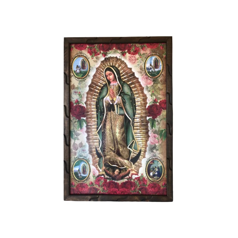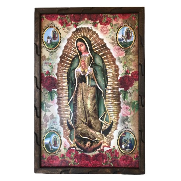 Virgen De Guadalupe 4 Apariciones #22 Cuadro Madera Rustica 36”x24”, New