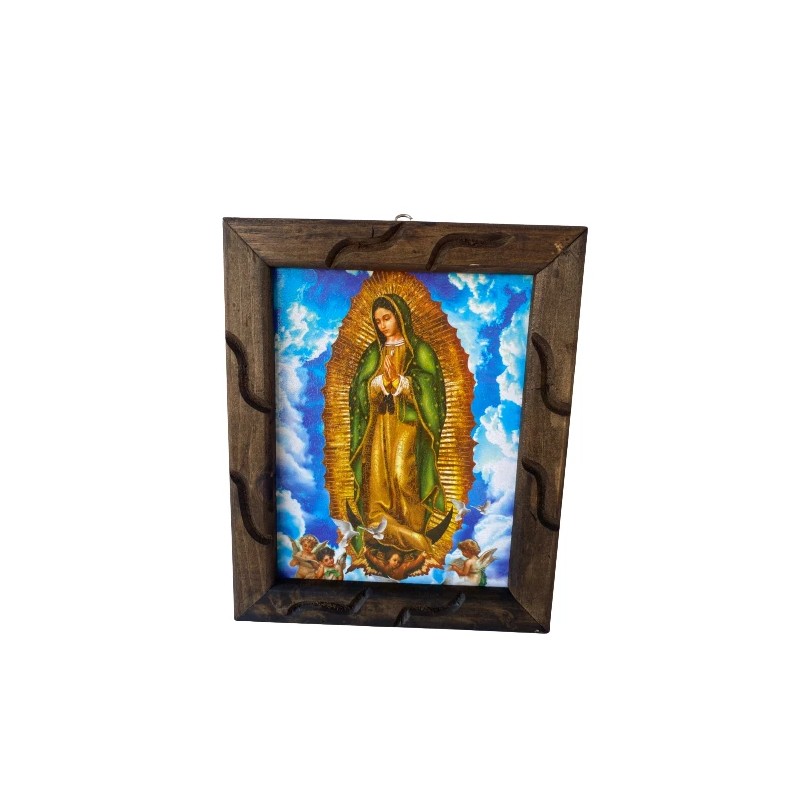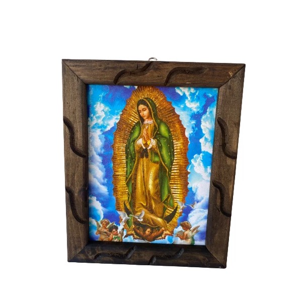 Virgen Guadalupe Azul Angeles Cuadro Rustico 9”x11” Nuevo
