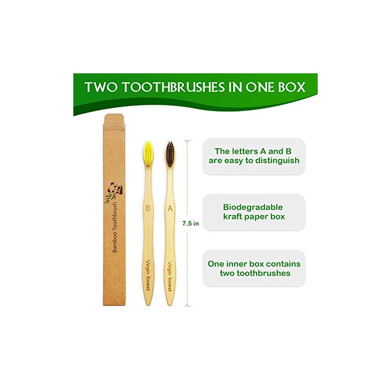 - ♻EXQUISITE PACKAGING Pack of 10 bamboo toothbrushes,two different colors of bamboo toothbrushes in a pack of cartons,and marked A-B,enable easily tell every toothbrush apart,very suitable for family members.ECO friendly and renewable kraft paper is used for packing box.
