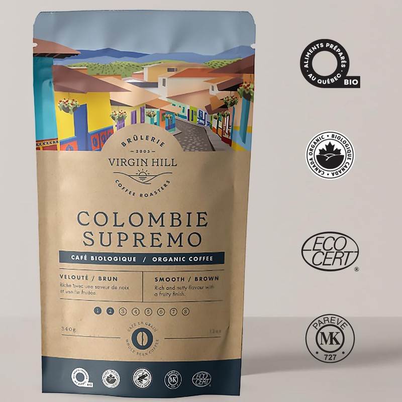 - ✅ THE COFFEE: Virgin Hill Coffee's whole bean Organic Colombian Supremo Brown is a light roasted bean from one of Colombia's highest grades of coffee. Available in 12oz / 340 gr bags.