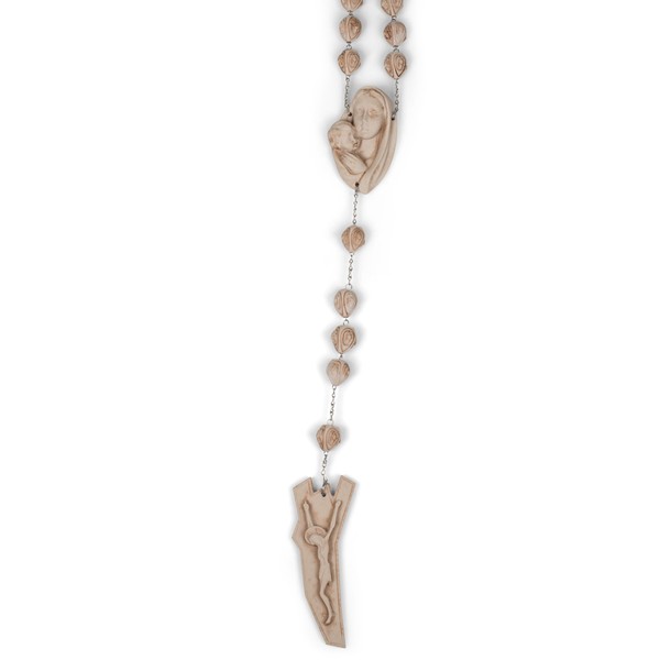 - Virgin Mary and Jesus Carved Beads Alabasterite Wall Rosary 65 Inch