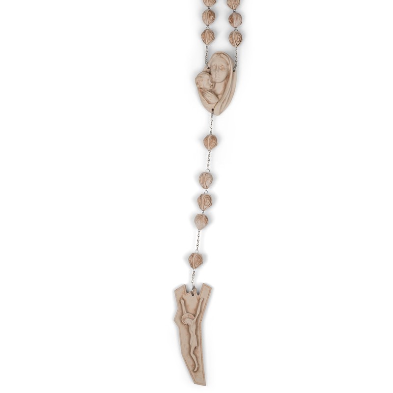 Virgin Mary and Jesus Carved Beads Design 65 Inch Alabasterite Decorative Wall Rosary