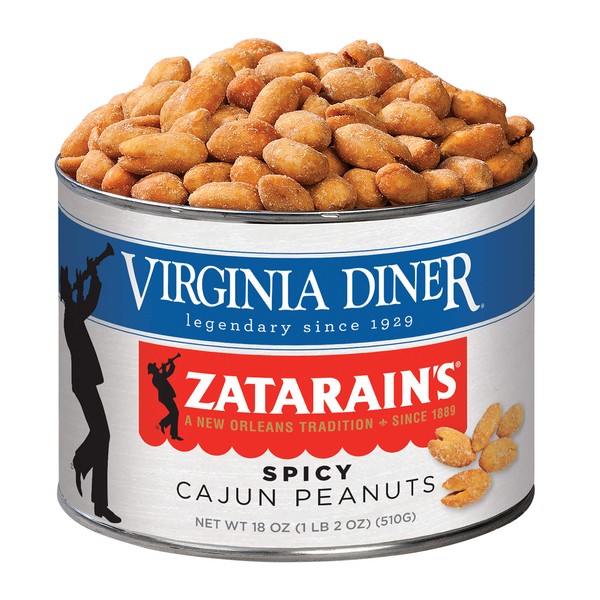 Virginia Diner Zatarain's Spicy Cajun Peanuts - Gourmet Cajun Peanuts Non-GMO, Preservative Free Gifts from Virginia Since 1929-18 Oz Can