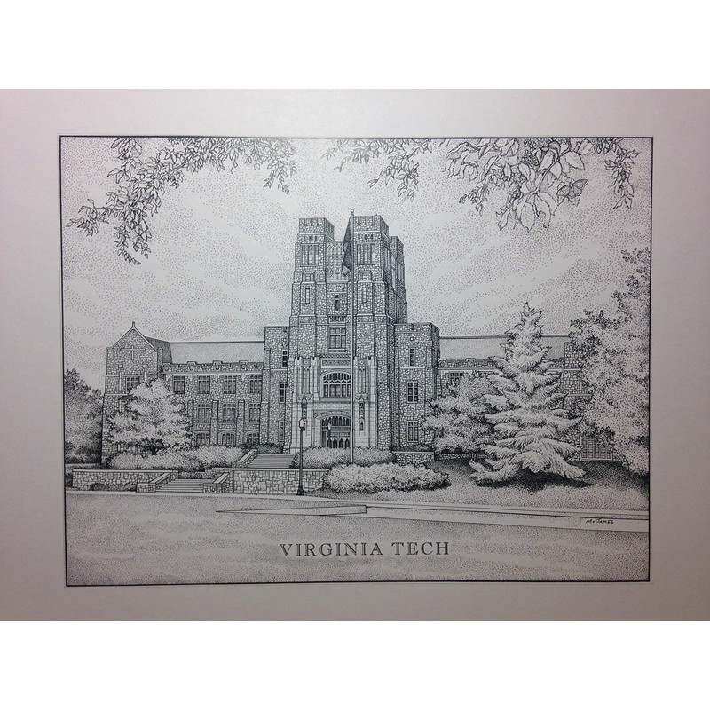 Virginia Tech Burruss Hall 11x14 Print from pen & ink original