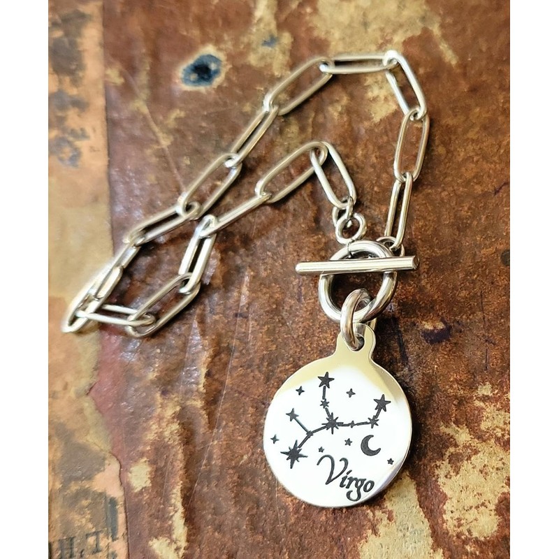 Virgo, Zodiac, Constellation Charm, Paperclip Bracelet, Toggle Clasp, Shiny Silver Stainless Steel