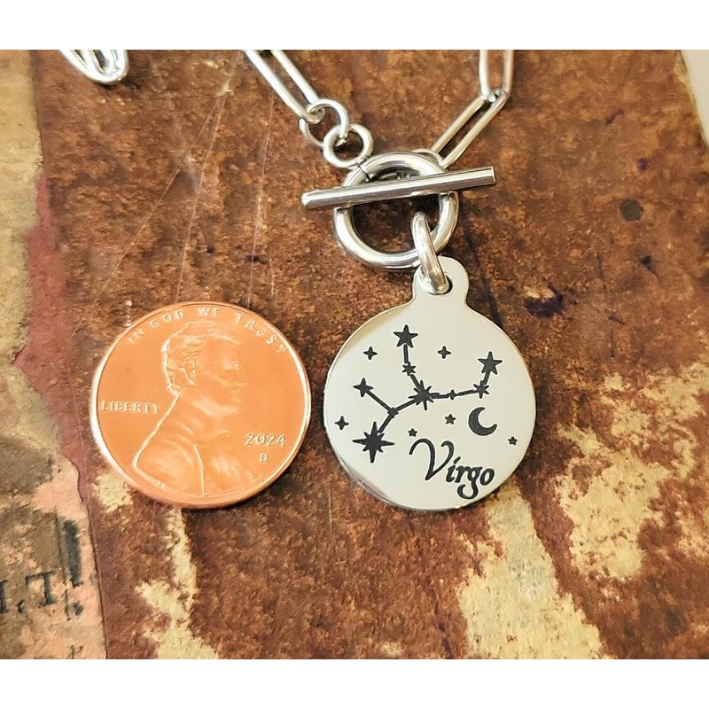 - Zodiac Charm: Elegant stainless steel charm featuring the Virgo constellation design with a crescent moon and stars.