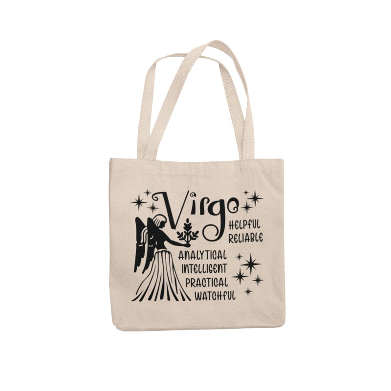 Virgo Zodiac Signs Tote Bag - Long Handled Natural Colour Shopper with Astrology Star Sign Design