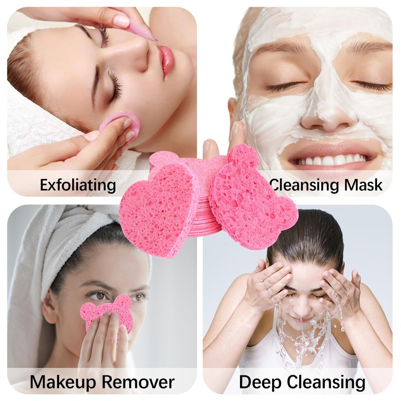 - Heart Shaped + Bear Shaped: Our face sponges for cleansing and exfoliating are designed in cute heart and flower shape, They can be applied for cleansing facial skin, removing cosmetics, dirt, oil from your face, keeping your skin clean and fresh