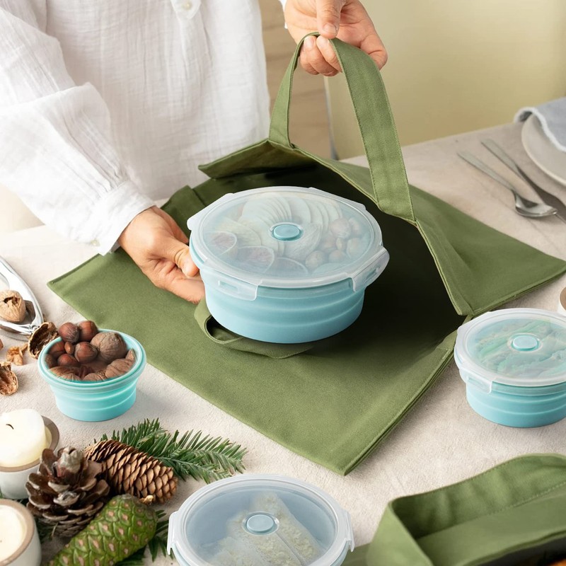 - 🍇 Vielseitig: Faltbare Frischhaltedose Silikon Ideal für den Einsatz im Freien, für Geschäftsreisen, Heimreisen, Picknicks, Camping und so weiter. Geeignet für die Aufbewahrung von Lebensmitteln, Salaten, Obst, Joghurt, Sandwiches und vielen anderen Lebensmitteln.