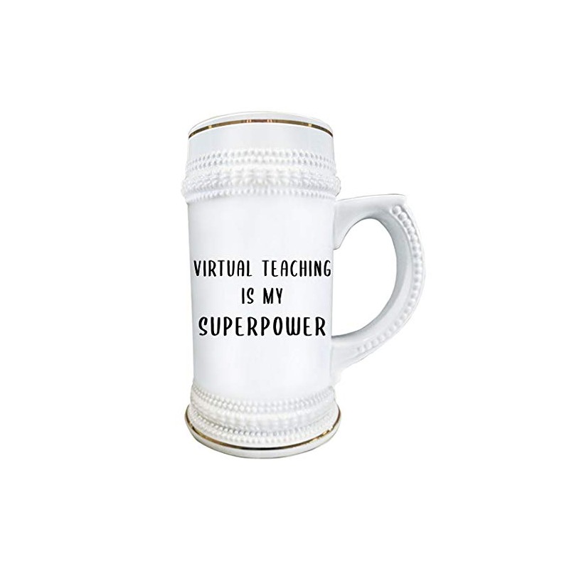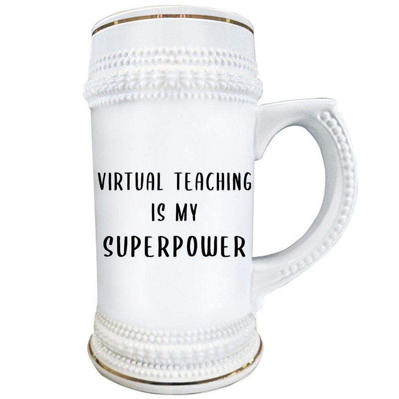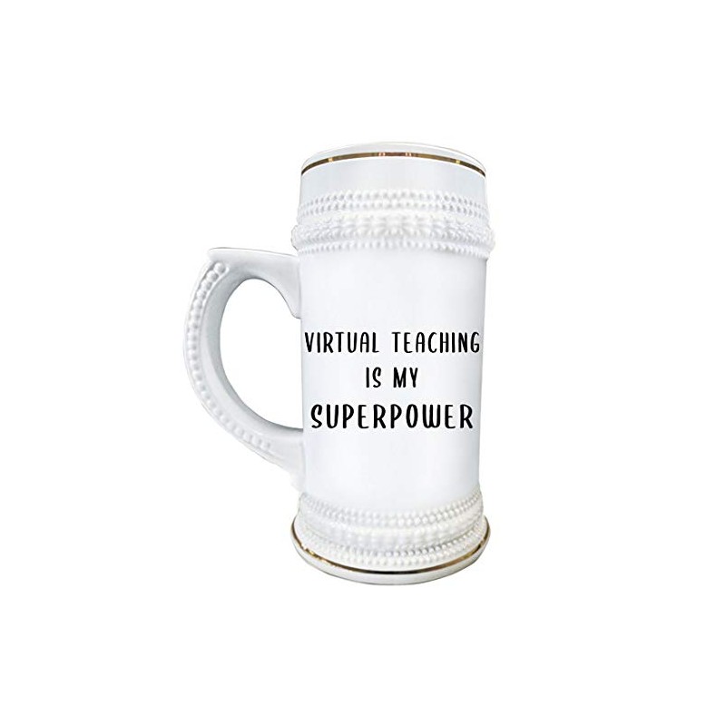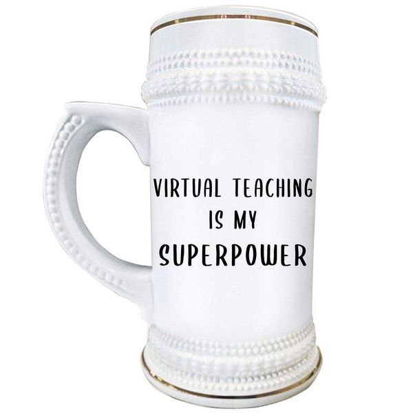 Virtual Teaching - Beer Stein Mug 22oz Ceramic Drinkware - Funny Gifts Idea for Teacher Professor Teaching Assistant Appreciation - Quarantine Pandemic Distance Learning School Year Gag - Superpower