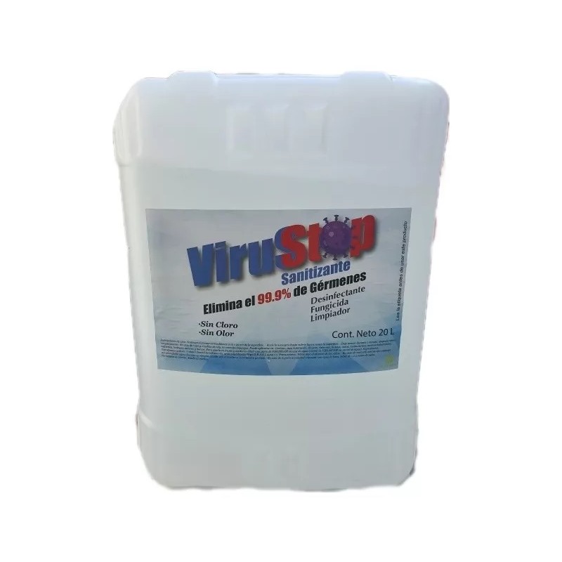 Instrucciones de usos: Sostenga el encase verticalmente a 150 20 cm de la superficie.- Rocie lo necesario hasta cubrir ligeramente la superficie-Deje actuar durante a minuto, después retir completamente. En caso de ropa y muebles de tela, no necesita enjuague. Puede aplicarse en: Cocinas, casa habitación, tinacos, cisternas, hoteles, autos, restaurantes, cocinas industriales as, bodegas Ingredigas, aviones y barcos. Para usarlo en frutas y verduras diluir una parte de VIRUSSI OP en una de agua (100ml V con abundos: n-elquil dimetil bencil amonio, urea estabilizado Tips G.RAS.), agua es. Precauciones: NO se deje al alcance de los niños.