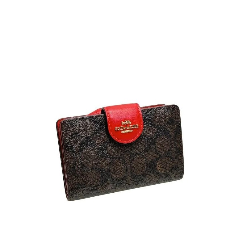 Visco Aireet Women's Bi-Fold Wallet Mail Order L-Shaped Wallet Signature Coated Canvas Medium Corner Zip Wallet Outlet Product, Walnut × Red