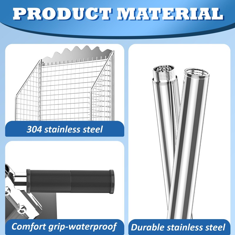 - 【2-in-1 Detachable Design】: Use as a standalone scoop or attach the extension pole for extended reach. The removable handle features a dual-screw connection for secure tightening, preventing detachment. The adjustable long 柄 design adapts to different heights, allowing comfortable standing operation—no bending or squatting required, saving time and effort.