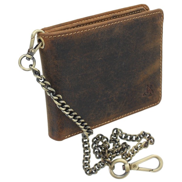 VISCONTI Leather Biker Wallet with Security Chain RFID Plus Tap and Go CHN Oil Tan