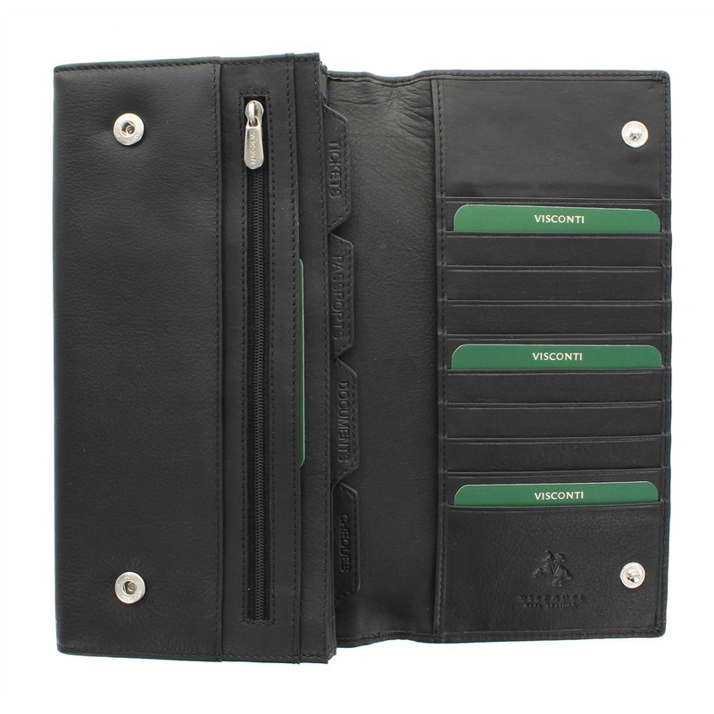 VISCONTI Leather Travel Organiser Wallet RFID Blocking 1179 Black