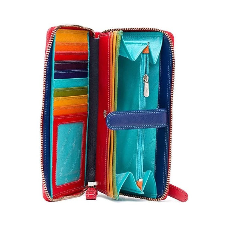 Visconti Spectrum 33 Multi Colored Soft Leather Ladies Wallet Purse Clutch (Red Multi), Large