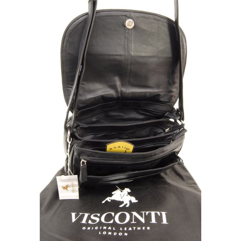 VISCONTI - Women's Leather Crossbody Saddle Bag - Medium Handbag - Multiple Pockets - Adjustable Shoulder Strap - ATLANTIC 2195 - Black
